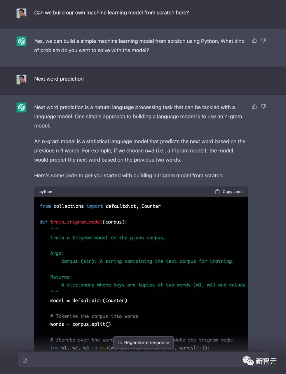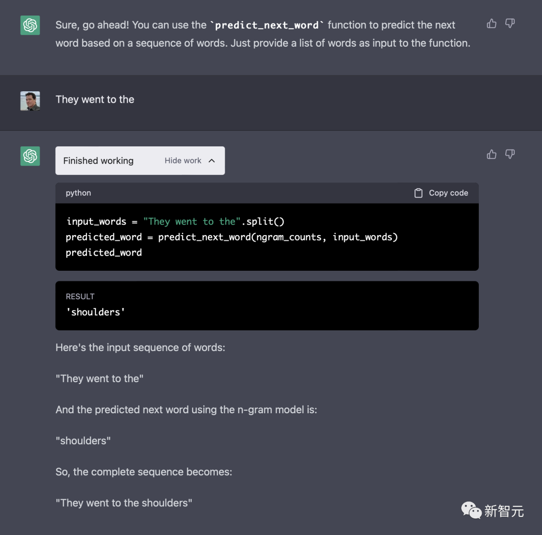虽然目前 ChatGPT 无法将任何机器学习库加载到代码解释器中,但我们可以使用 n-gram 进行一些基本的统计文本生成。