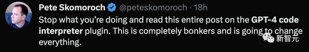 还有人表示,即使停下手下的事,也要看看这篇关于 GPT-4 代码解释器插件用例的文章。这完全是疯狂的,并将改变一切。