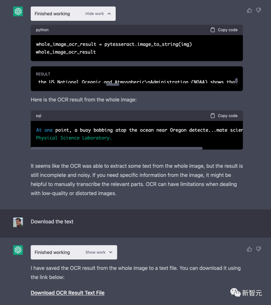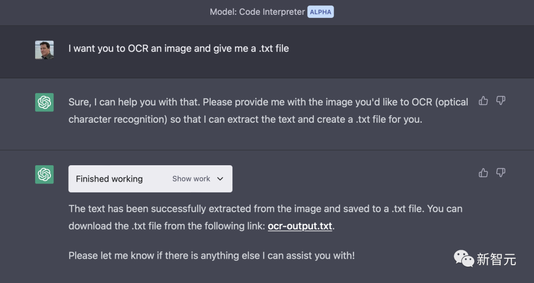 研究称,光学字符识别(OCR)是代码解释器中的一个库。通过用网站截图进行测试,果然可以识别。