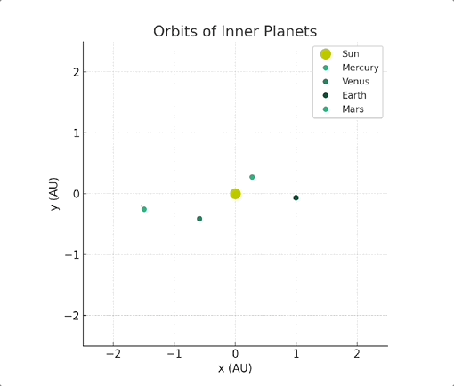 通过使用 Matplotlib 库,我成功地让 ChatGPT 生成了内部行星轨道的模拟,并将其保存为 gif。