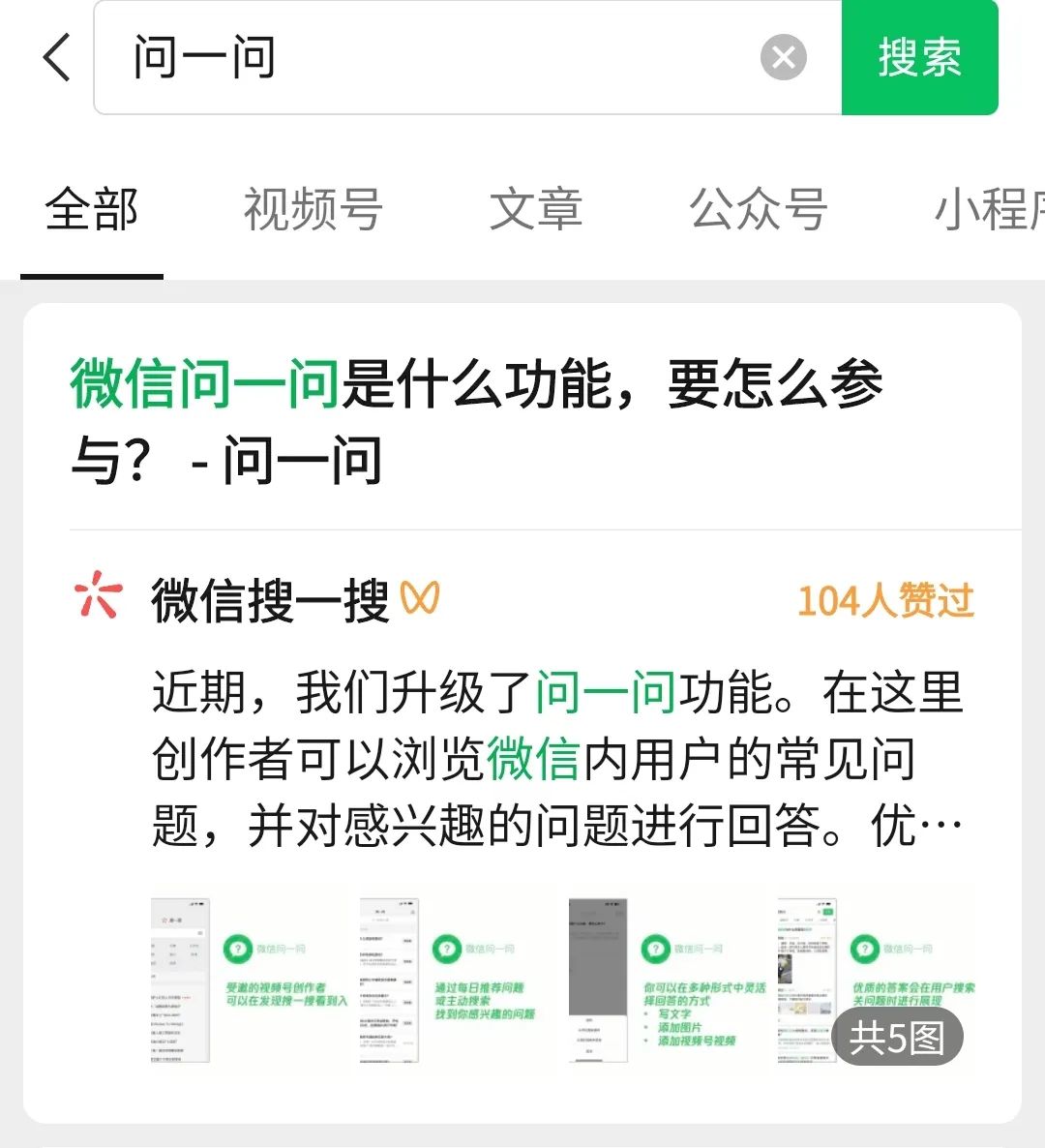根据微信官方介绍,在问一问里,创作者可以浏览微信内用户的常见问题,并对感兴趣的问题进行回答。优质的答案会在用户搜索相关问题时进行展现,帮助更多人解答问题,用户可以对认可的回答进行点赞、转发或关注创作者。