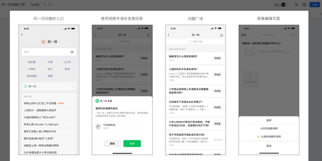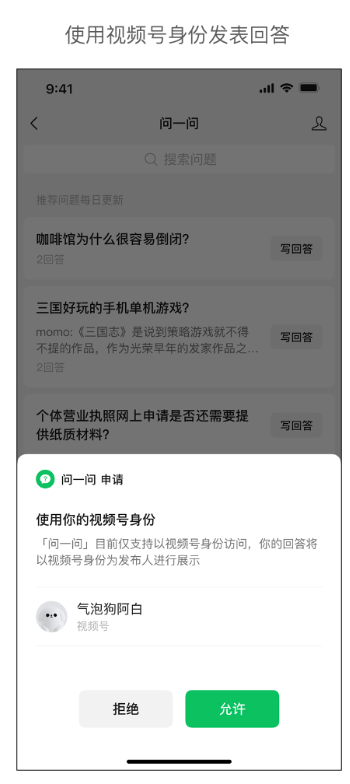 拥有体验资格的用户,可以打开发现页上的搜一搜,即可看到问一问功能的入口,之后打开并授权使用视频号身份,就可以进行问题的浏览和答案的发布。