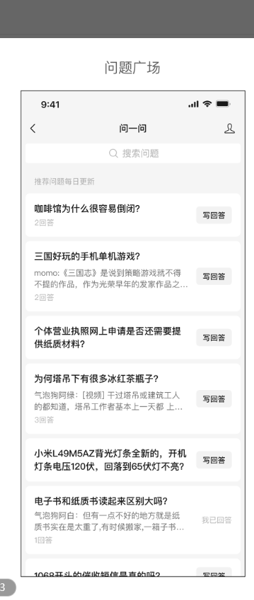 在问一问里,用户可以根据推荐列表或自行搜索找到感兴趣的问题进行回答,不过目前暂时还无法提问。
