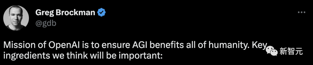 而OpenAI的另一位创始人Greg Brockman转发了Altman的推文,再次强调OpenAI的使命「是确保AGI惠及全人类。」