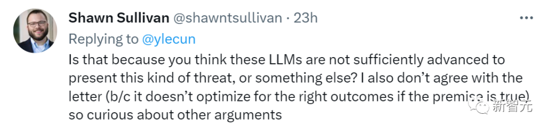 有网友表示,我也不同意这封信,但我很好奇:你不同意这封信的原因,是觉得LLM不够先进,根本威胁不到人类吗,还是其他原因?