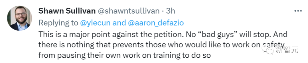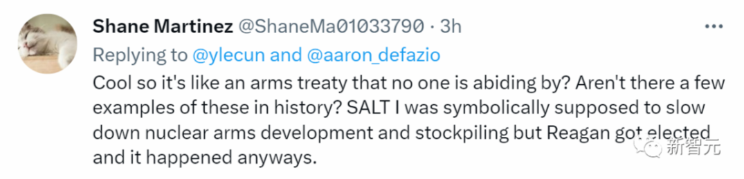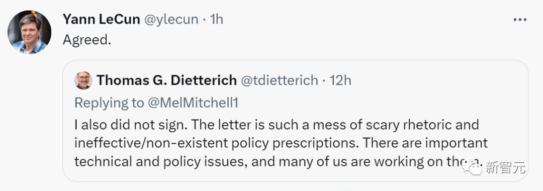 这位大佬说,「我也没签。这封信充斥着一堆可怕的修辞和无效/不存在的政策处方。」 LeCun说,「我同意」。