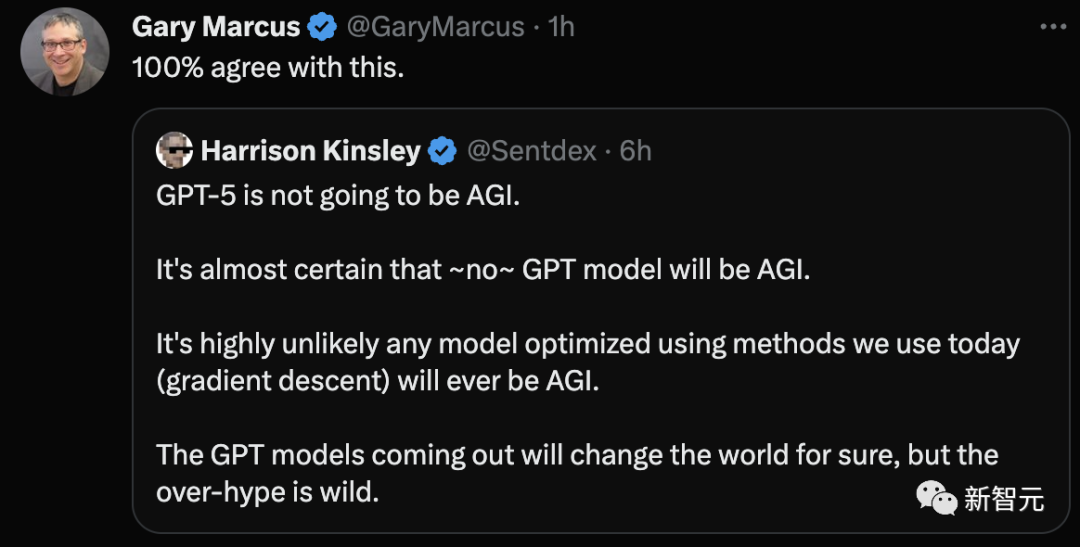 GPT-5不会是AGI。几乎可以肯定,没有GPT模型会是AGI。我们今天使用的方法(梯度下降)优化的任何模型完全不可能成为AGI。即将问世的GPT模型肯定会改变世界,但过度炒作是疯狂的。
