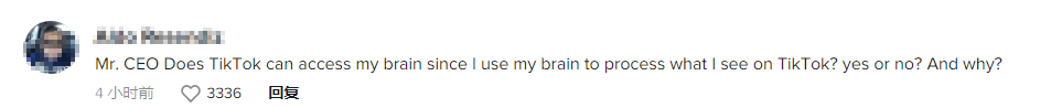 “既然我用大脑来处理我在TikTok上看到的东西,那么请问TikTok能访问我的大脑吗?是还是不是? 为什么?”