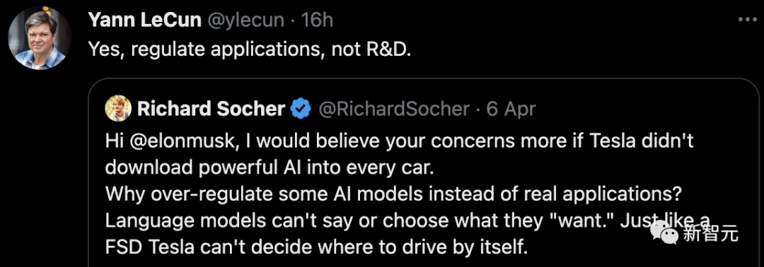 LeCun转发了该网友的推文,表示同意:「没错,应该去规范应用,而不是研发。」