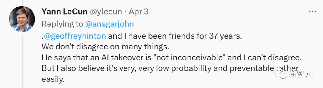 【导读】呼吁暂停GPT-5的公开信发出后,沉默许久的Bengio发了长文,解释自己签字的原因,而LeCun继续强调,现在的担忧根本是杞人忧天,与AI末日论者辩论毫无意义。