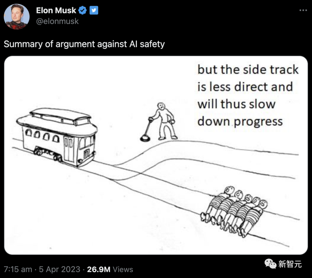 另一边,作为公开信支持者的马斯克表示,你们这些反对暂停的人就属于下面这种人: