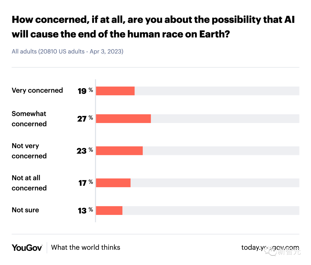 而关心AI会毁灭人类这个话题的人,和不关心的人,大约各占一半。