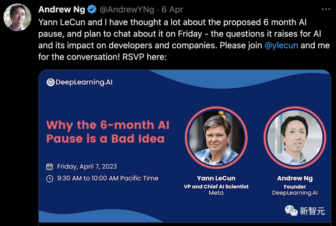 在与众网友舌战多日后,他将于明天和吴恩达亲自出镜,向大众公开解释为什么他们不赞同暂停训练超强AI 6个月。