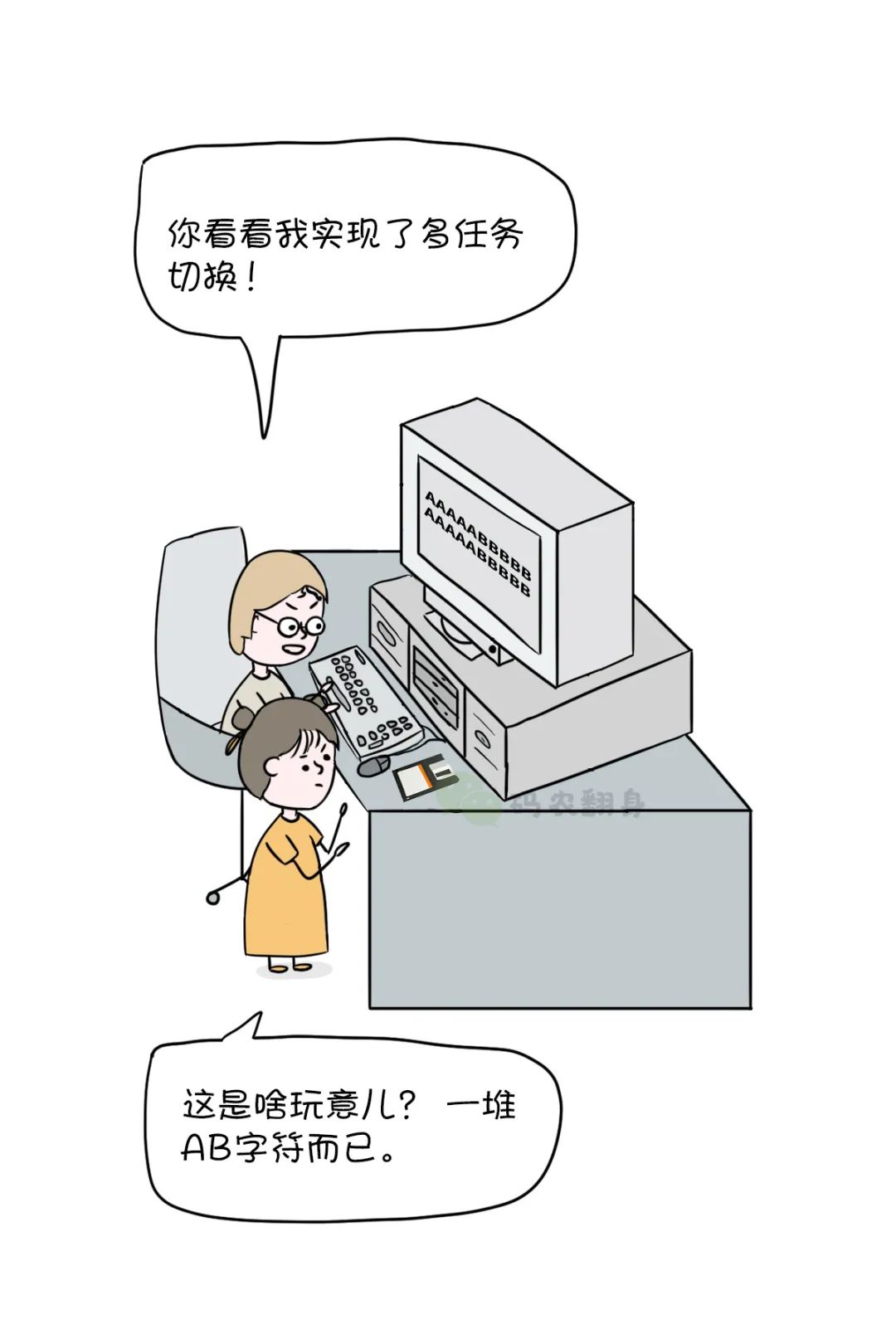 于是我仔细研究了386 CPU的多任务编程,做了一个小实验:两个任务交替显示字符: