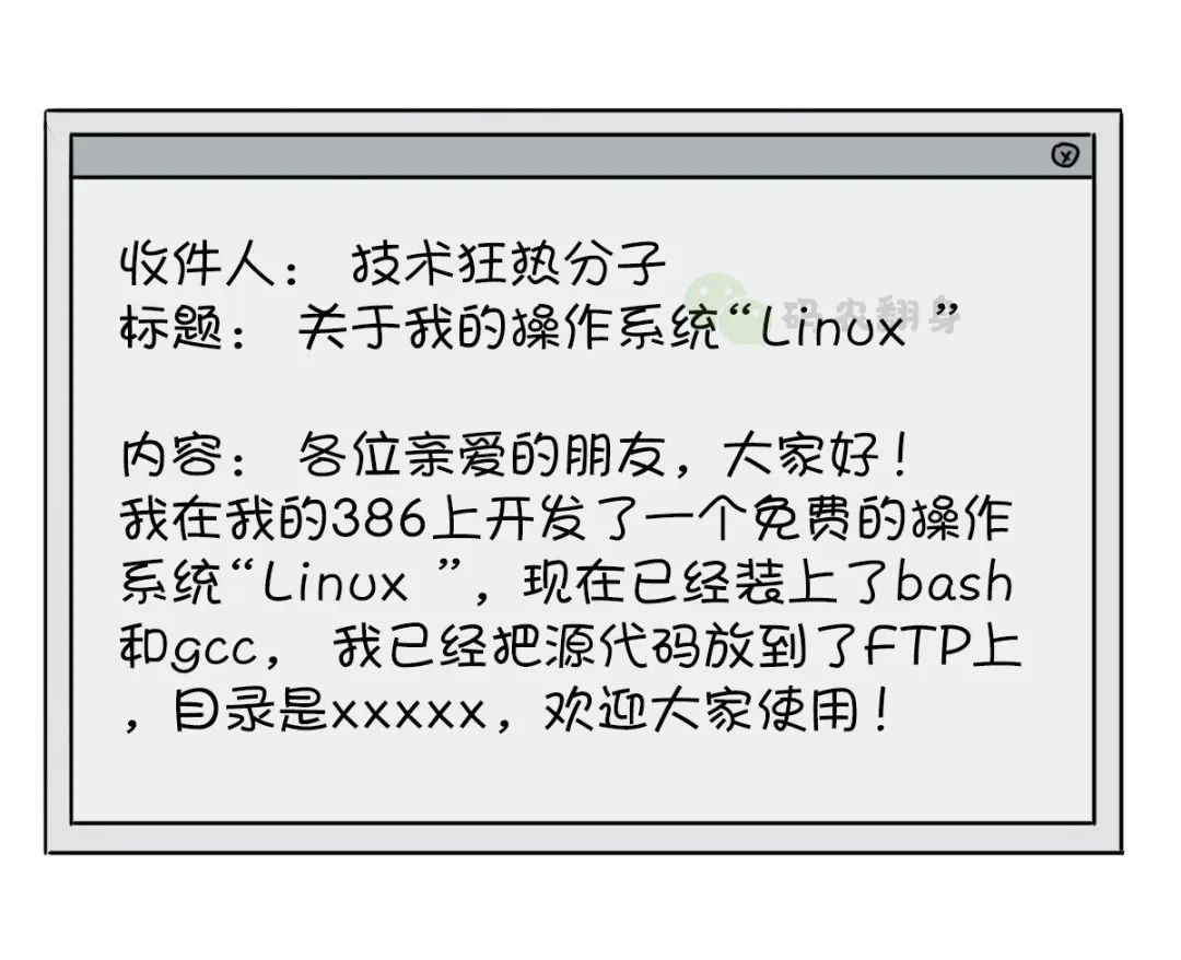 1991年8月,我决定公开我的操作系统 Linux 0.01版(没错,这是它的名称),不过,先让少数人试用一下会更好。