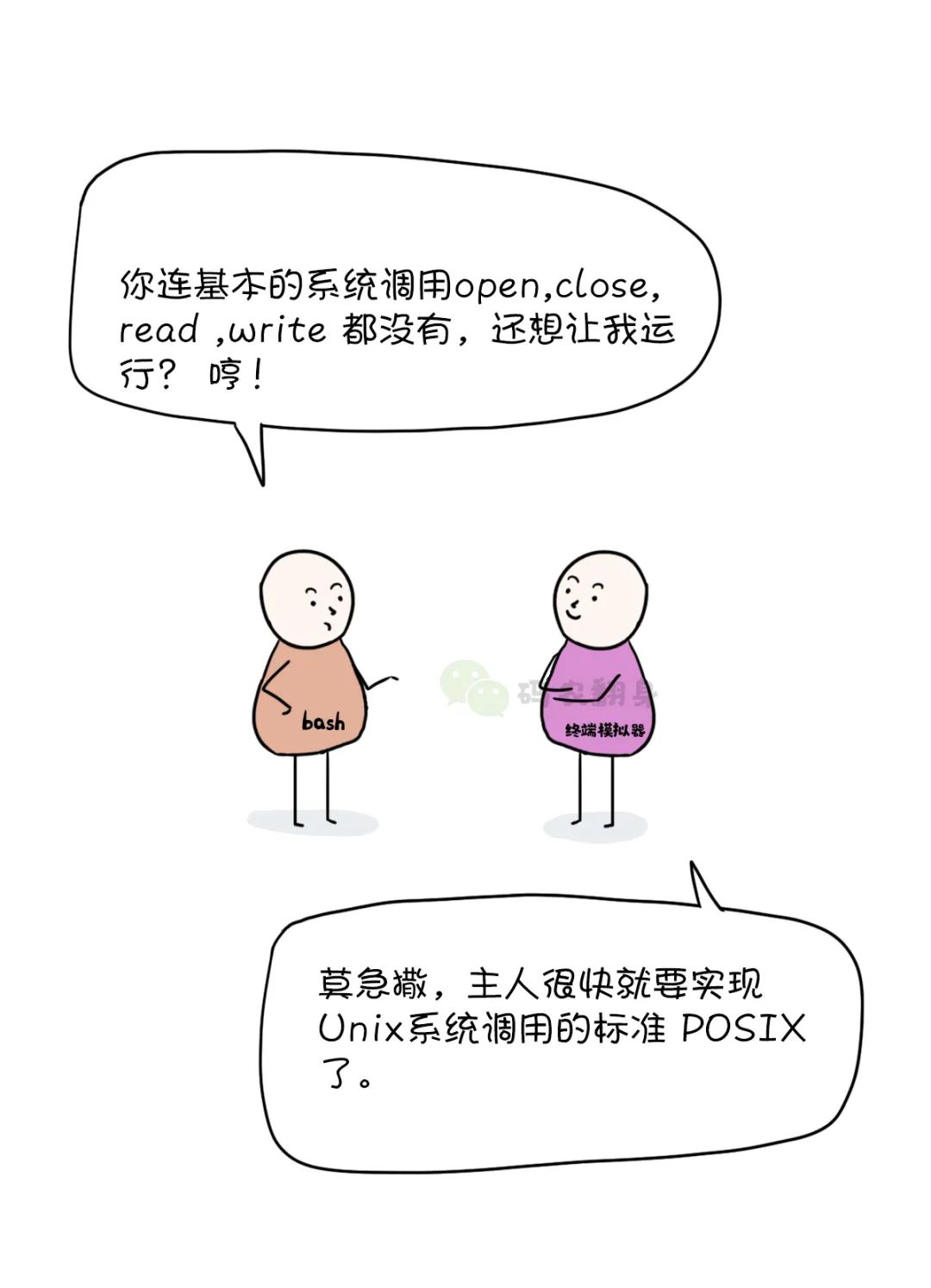 但是这是非常难的一件事情,因为bash需要使用很多操作系统的系统调用才能运行。