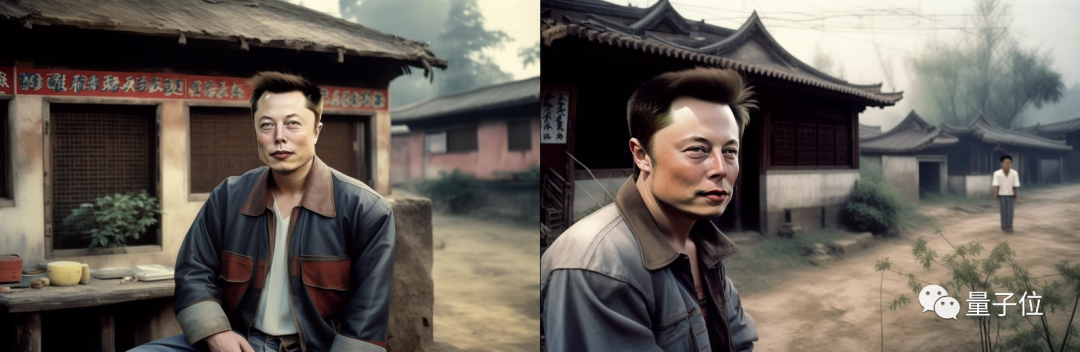 中国80年代,马斯克在河南的农村,穿着当时年代的中国服装。