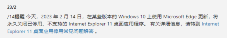 今年的 2 月份,微软再次面向全球通知,将会在 2 月 14 日彻底从系统当中彻底封死 IE。
