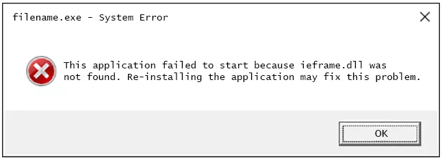 因为系统中缺少 “IE框架.dll”,当前程序启动失败