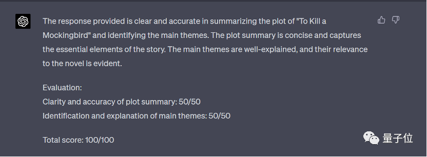 结果GPT-4对这个回答评价很高,并给出了100分的高分: