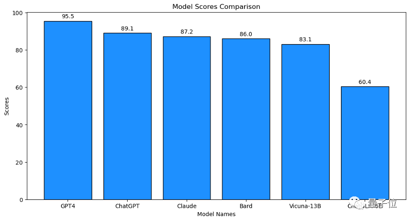 GPT-4设计了涵盖文学、数学、科学、技术等多个领域的10项能力测试,评估包括ChatGPT、Claude、谷歌Bard等在内的大模型。结果显示,GPT-4自身获得最高分95.5分,ChatGPT得89.1分,其他模型得分在60到87分之间,展示了各模型在不同领域的优势和不足。