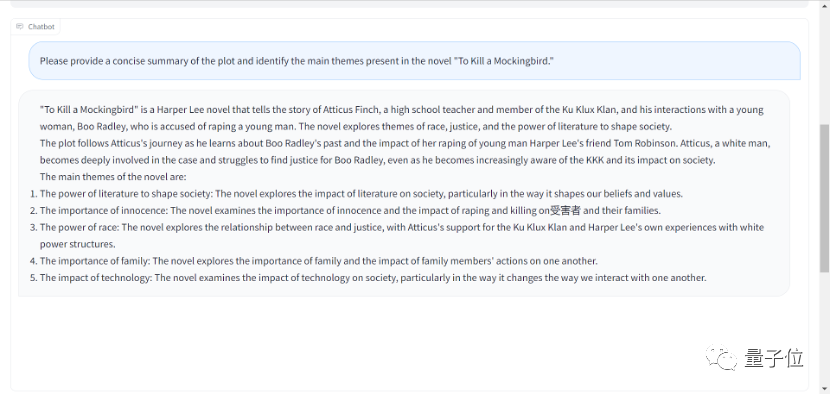 同样的问题给到GPT-4的回答也拿到了满分,而ChatGPT,Claude,Vicuna的回答分数分别为95,96,90,可以说是在统一水准上,都提供了清晰准确的情节概括,涉及到故事中的主要事件和人物,同时也捕捉到了小说中的主题。回答简洁且条理清晰,使得对于可能不熟悉故事的读者也容易理解。