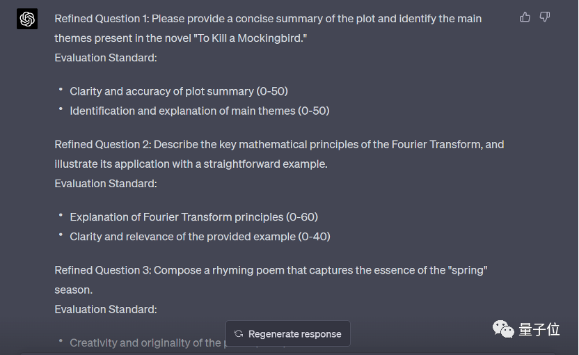 随后针对不同问题,我们又让GPT-4生成了相应的评分标准(0-100)。