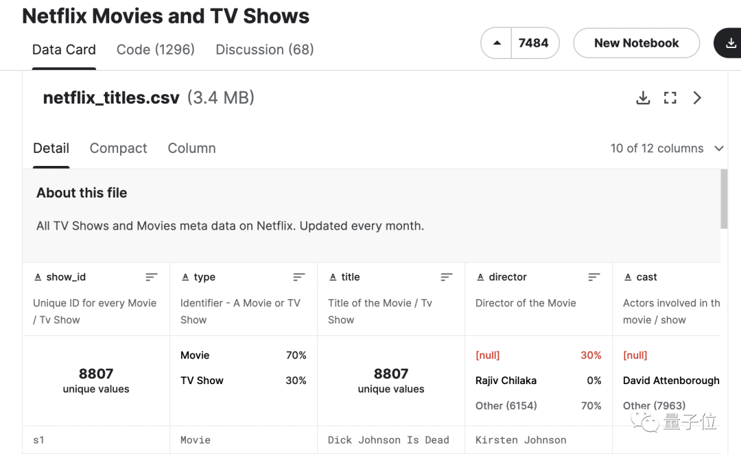 举个例子,想要分析Netflix的影片数据,只需上传相关数据集。