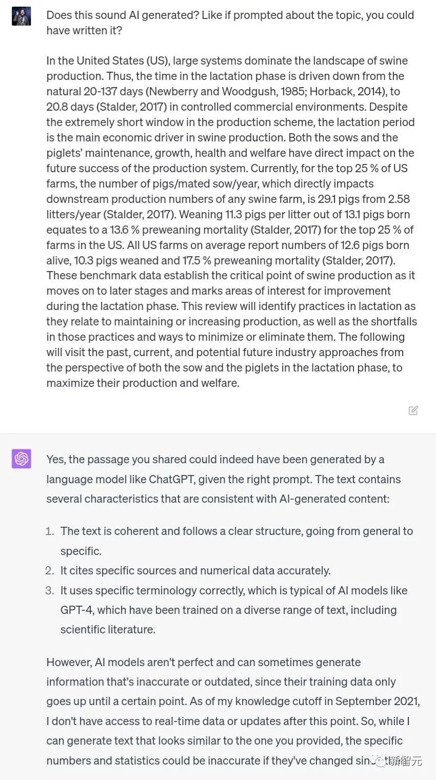 拿一段看起来像是某篇论文的节选,来问ChatGPT是不是它写的。