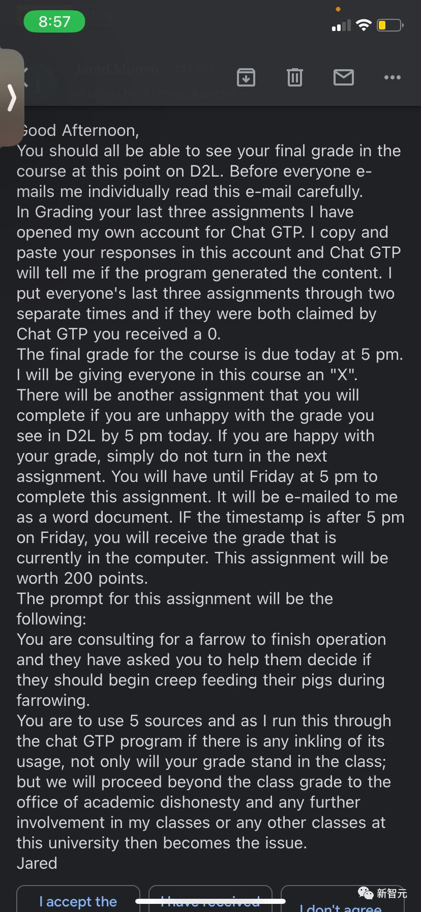 为了检测学生提交的论文是否作弊,一位名叫Jared Mumm的教授把他们的论文提交给了ChatGPT。