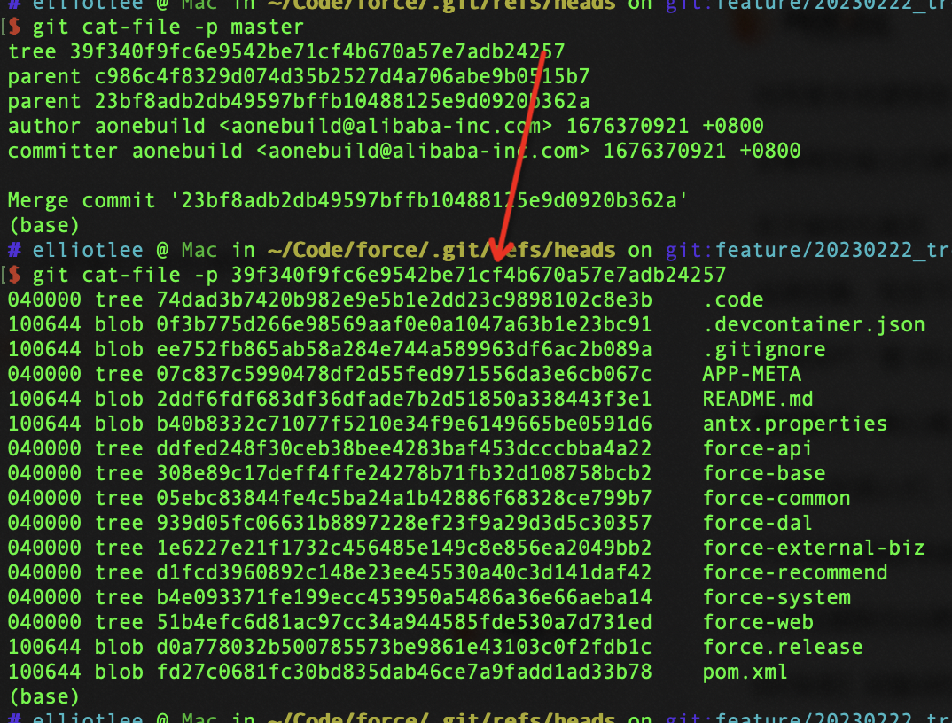 可以看到展示了一个列表,与GIt Log中展示不同, Tree里其实包含了完整的文件树。树的末端,指向一个文件的oid。