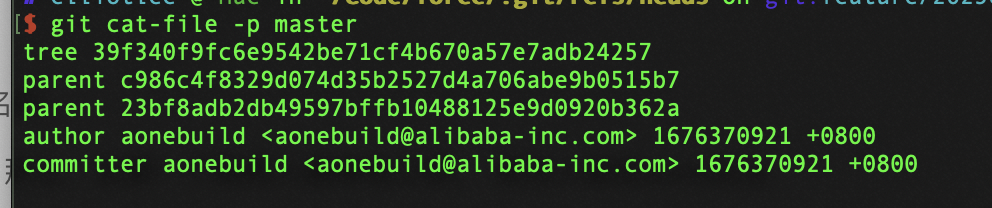 这里parent指向的是另一个commit, 典型的树状数据结构。