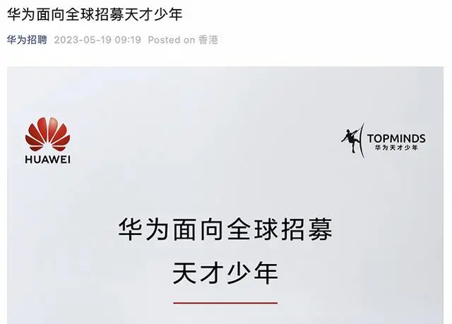 据华为招聘官微消息,华为再次面向全球招募“天才少年”。
