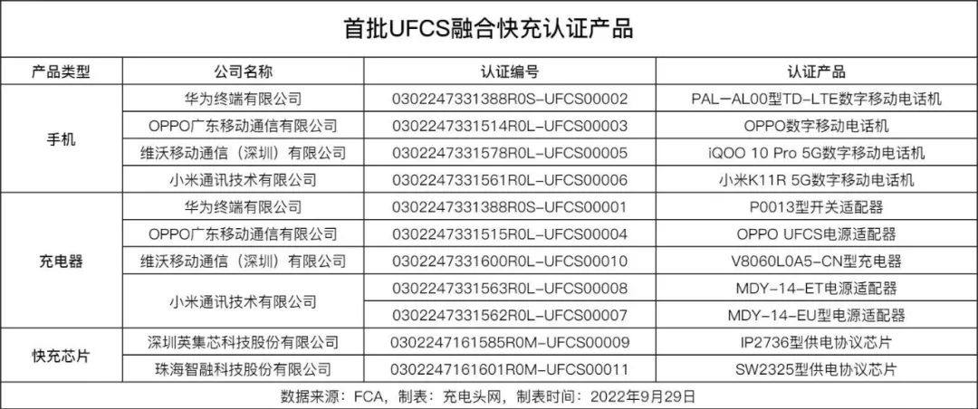 好在目前首批一共有 11 款产品通过 UFCS 融合快充认证。