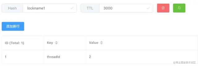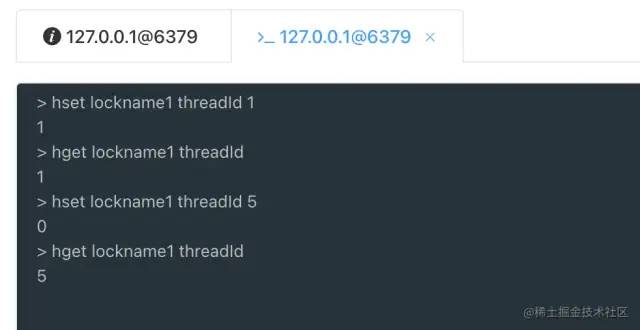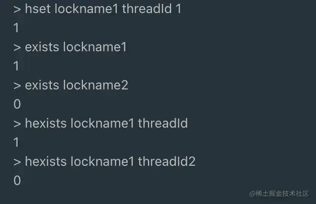 设置一个名字为lockname1的hash结构,该hash结构key为threadId,值value为1