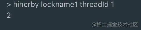 每次自增1时 hincrby lockname1 threadId 1,自减1时 hincrby lockname1 threadId -1