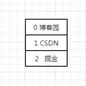 第 1 次循环将元素"博客园"删除后,元素的下标变成了下面这样: