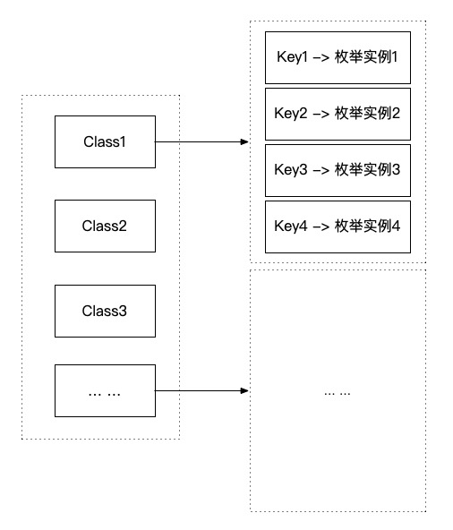* 以枚举转换出的任意值构建缓存,在枚举的静态块里面调用