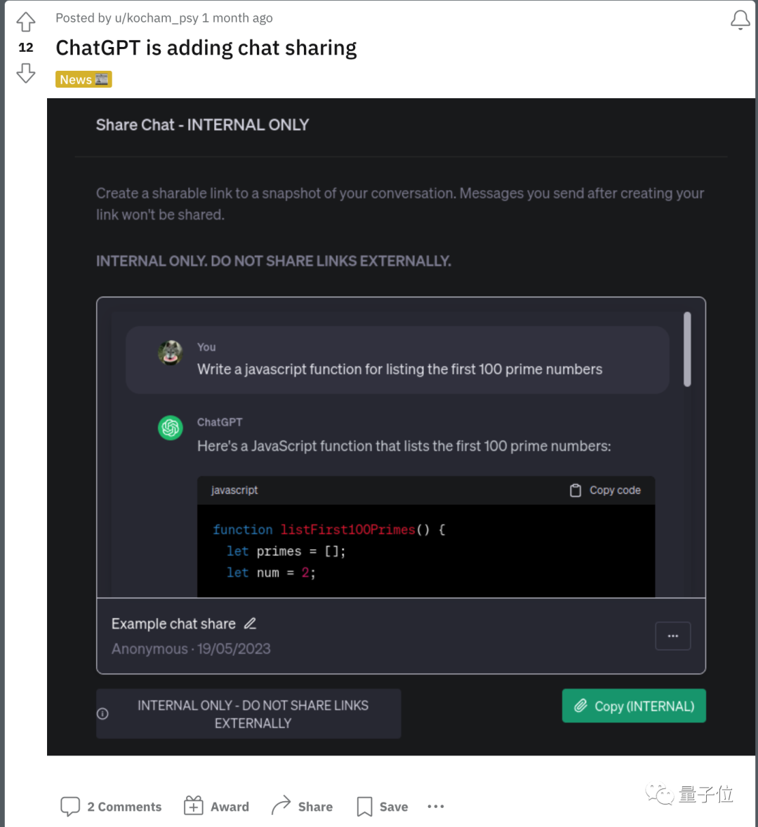 并且1个月前,他就用这种方法发现了“对话分享”功能——比该功能正式发布提前了一周左右。