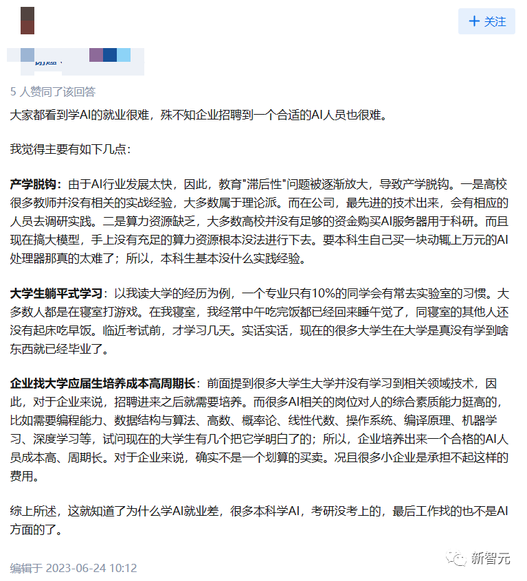 无独有偶,前段时间登上知乎热搜一个问题,也体现出AIGC领域对学历要求的进一步提升——大模型都火成啥样了,学AI的还能找不着工作?
