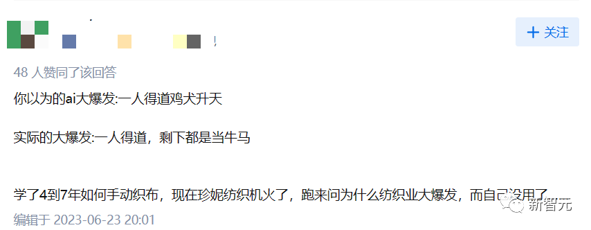 对此,一位知友一语中的地点出了原因:我学的是手动织布,结果现在珍妮纺织机火了……