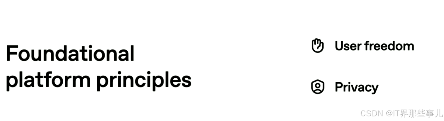 想要做到这样的平台,Sam Altman 认为至少要做到两点原则性条件,第一是用户自由,任何人都可以使用 AI 满足自己的需求。第二是隐私保护,他认为世界需要以一种不同于以往技术的方式来思考隐私问题。当用户与 AI 交流时,像与医生、律师、配偶交谈一样,会分享生活中最私密的细节,这也意味着公司需要强大的技术保护来保障这种隐私,但统一需要配套的政策支持。