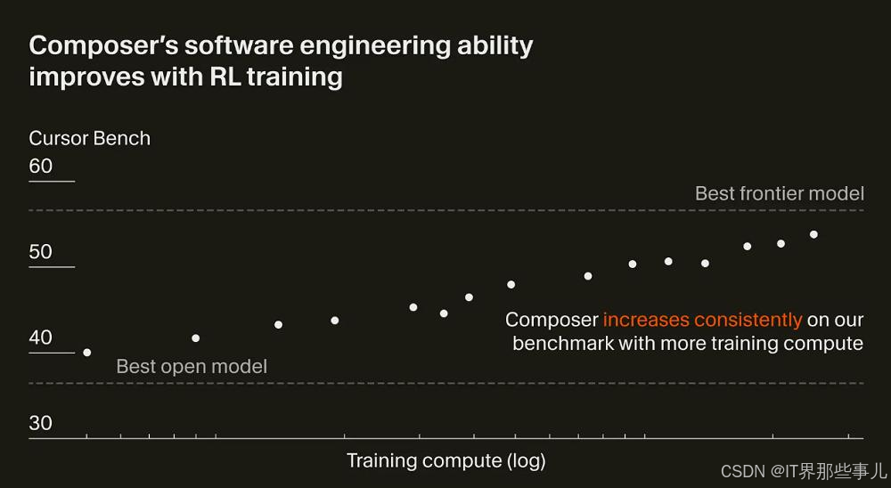 Composer是一个专家混合(MoE)模型,支持长上下文的生成与理解。它通过在多样化的开发环境中进行强化学习(RL),对软件工程进行了专项优化。