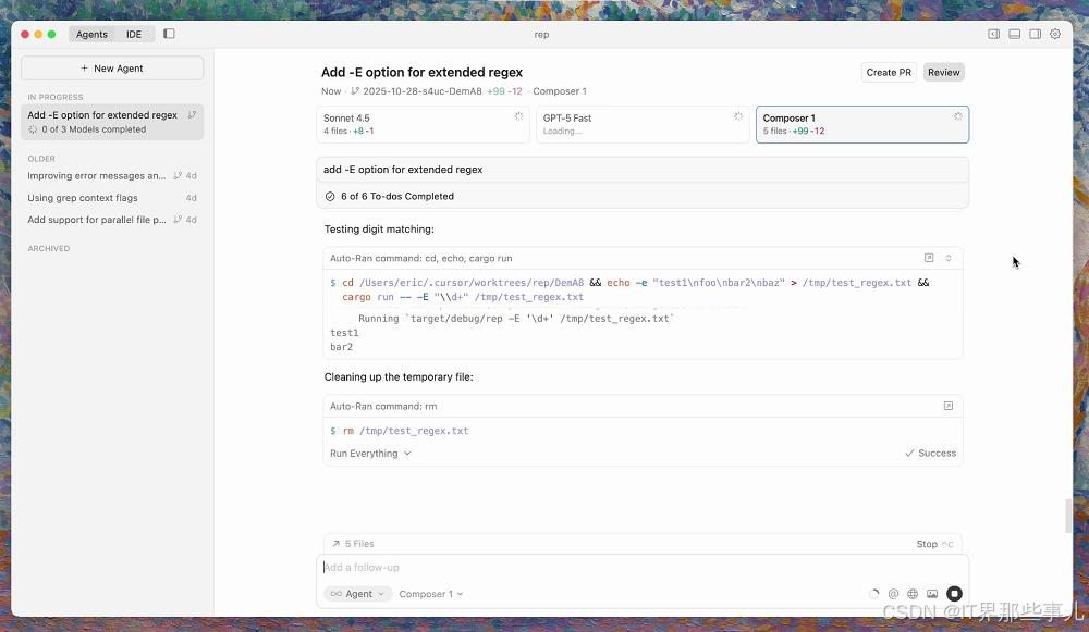 改进的代码审查功能把所有修改聚合到一个界面,让用户更容易查看Agent对多个文件所做的所有更改,而无需在各个文件之间跳转。