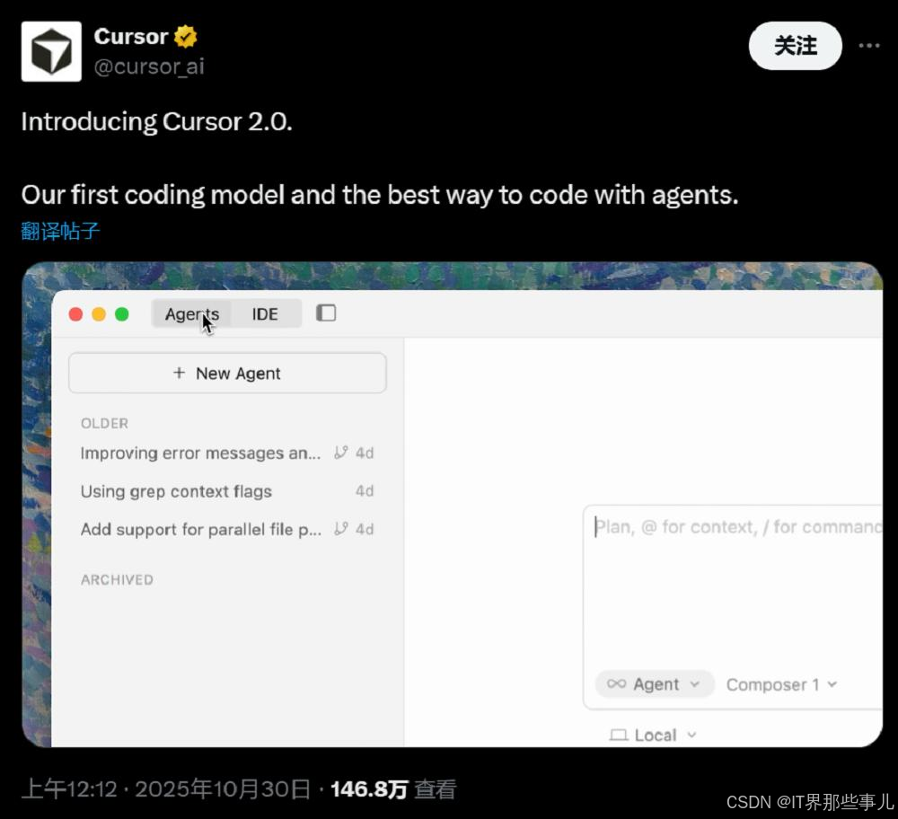 不装了!Cursor首款自研编程模型亮相,超快Cursor 2.0已上线。