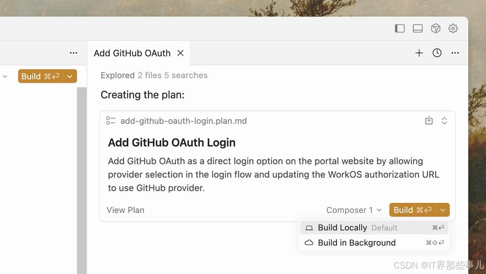 用户可在前台或后台构建计划,甚至可以通过并行Agent来同时制定多个计划,以便对比和审查不同方案。