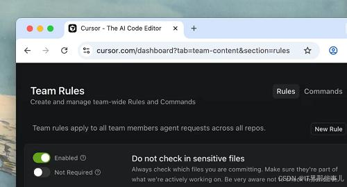 现在团队管理者可以在Cursor中自定义命令和规则,这一上下文将自动应用于所有团队成员,而无需存储在本地编辑器中。