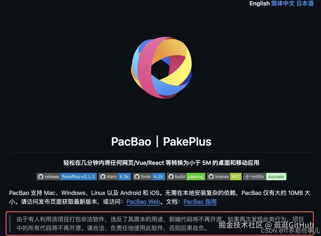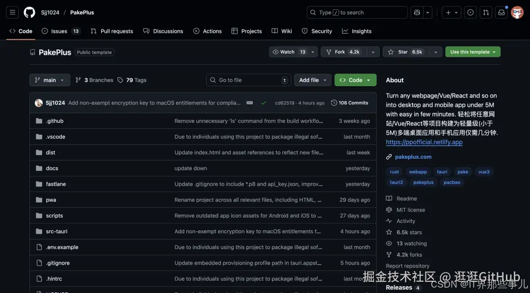 原文:3 个顶呱呱的 GitHub 开源项目,有点意思啊。01、快速把网页打包成 APP 这个 GitHub 开源项目有 6. - 掘金
