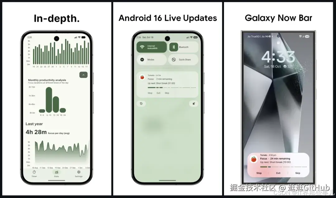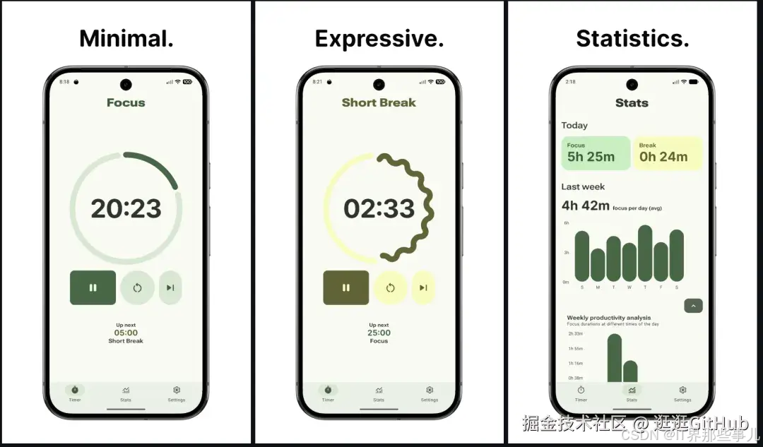 能统计你每天、每周、每月的专注时长,还能看自己哪个时间段最有效率,比如早上 9 点到 11 点。界面极简无广告,支持安卓 16 及以上的实时更新功能,适合学生、上班族用来对抗拖延。