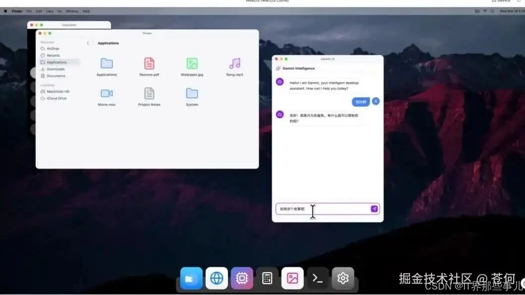 最绝的是,我让它帮我直接写了个 MacOS 操作系统,还内置了一个 Gemini AI 助手,和小助手聊天还能 AI 回复。